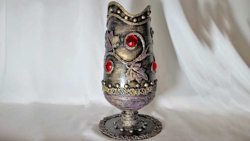 Заканчиваем декор кроны. Стоят такое деревце будет в коричневой чаще, из дна. Украсить можно цветными камешками. Такой подарок из бутыли, сделанный своими руками, обрадует любого человека.