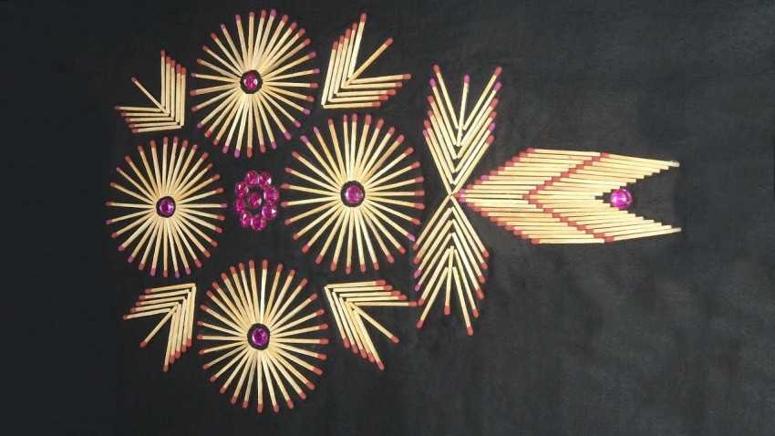 Всё очень просто. Большое количество фото рисунков из спичек позволит вам найти вариант по душе. Вы распечатываете или рисуете контур рисунка, а затем по нему выкладываете спички.