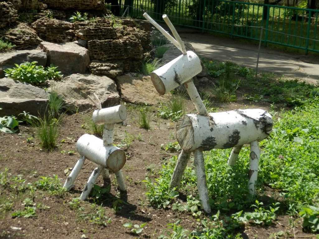 Такие поделки можно сделать из березы или из сосны или использовать любое дерево, растущее на участке и требующее утилизации. Выбранные бревна будут служить в качестве основы для детской качели, песочницы, лабиринтов, а также ступенек и дорожек.