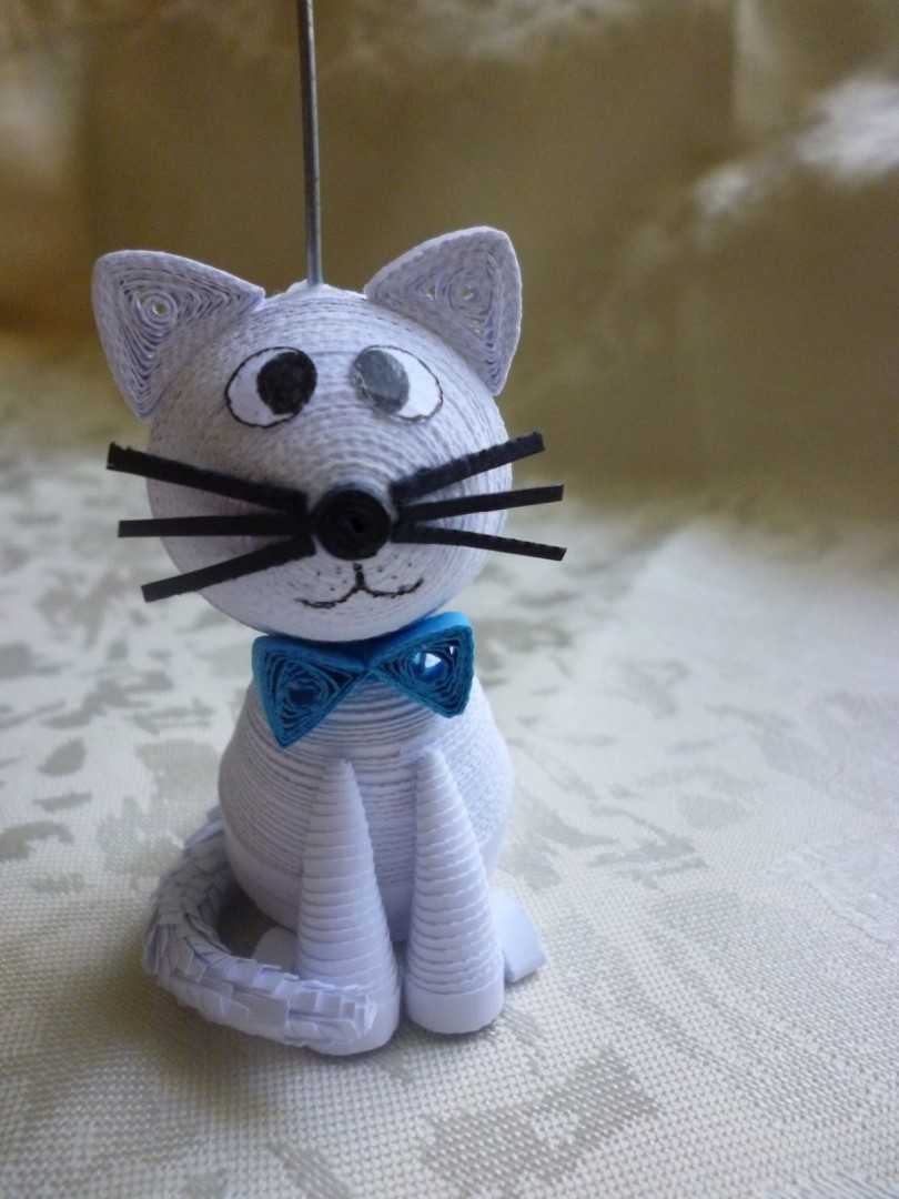 - Поверх фигуры приклеивают глаза, носик, усы животного и украшающие элементы.