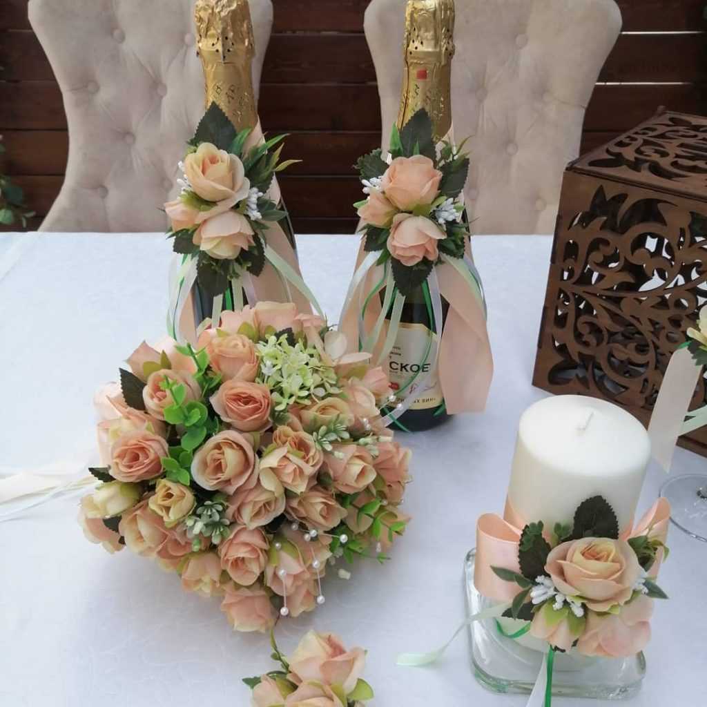 Свадьбу сложно представить без бутылок шампанского – гостевых, украшающих столы, и специальных, для новобрачных, которые гордо возвышаются на почётном месте до самого конца праздника. Конечно же, такой важный элемент нуждается в подобающем декоре.