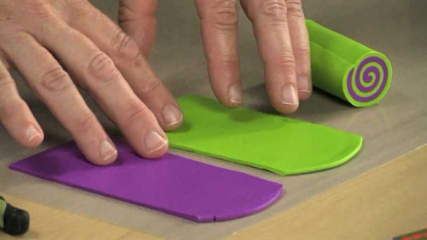 При использовании техники «калейдоскоп» разные глины сворачивают в рулет и вырезают формочками различные фигуры. Существует и техника перехода: используя кусочки разного цвета, формируют плавный переход одного оттенка в другой.