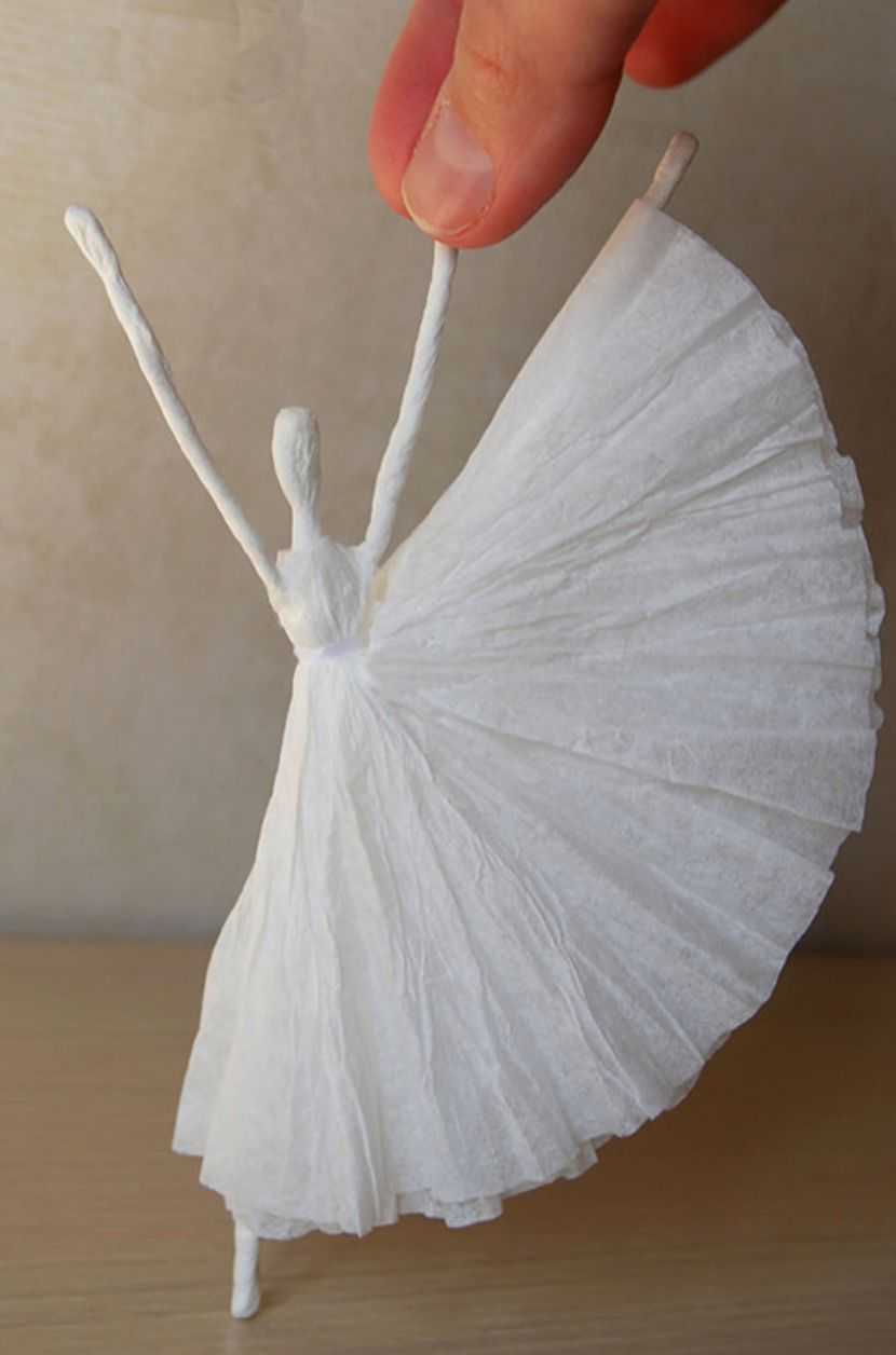 Основная часть фигурки делается белой, а наряд — ярким или пестрым. Можно использовать также нежные пастельные оттенки. Эта поделка станет отличным украшением или даже романтичным сувениром.