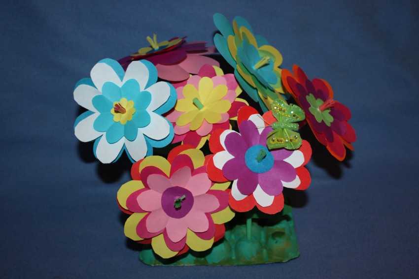 Сделав бутоны цветков из разных листов картона, может получиться яркий и красивый букет.
