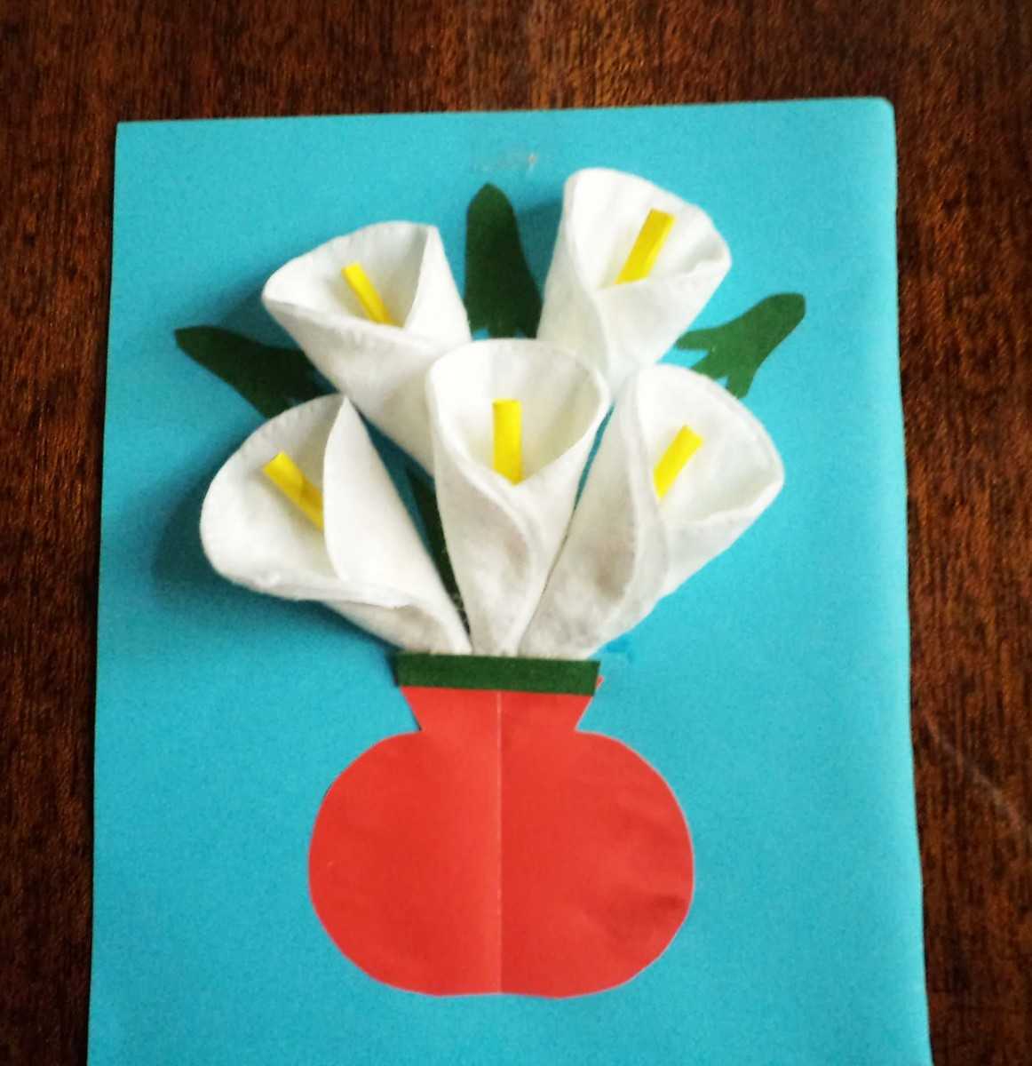 - Приклеить каллы на картон.