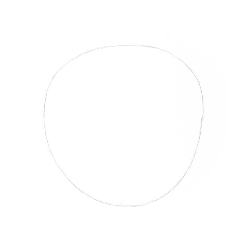Используя простой карандаш, рисуем окружность. Она не должна быть идеально симметричной, поэтому книзу мы ее немного заузим.