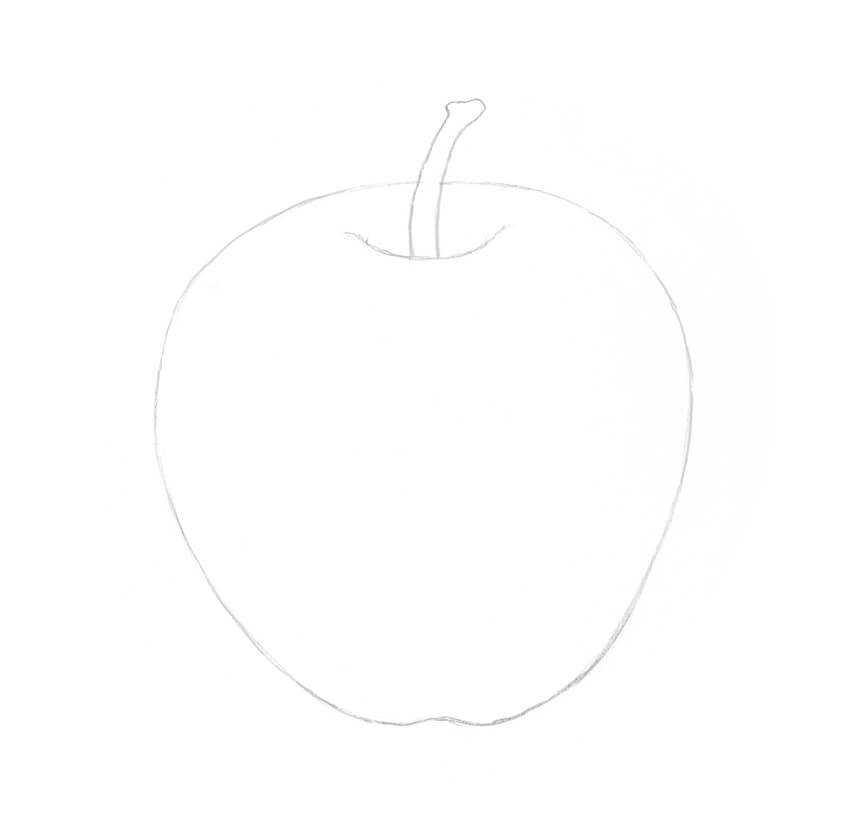 Вот как нарисовать яблоко поэтапно. Рекомендуем в последнюю очередь добавить на заднем фоне линию. Так рисунок приобретёт устойчивость.