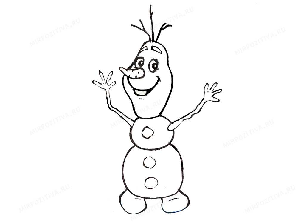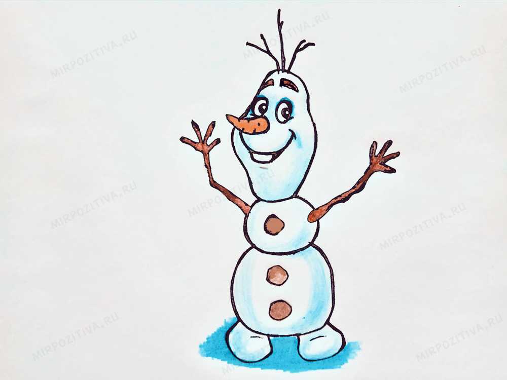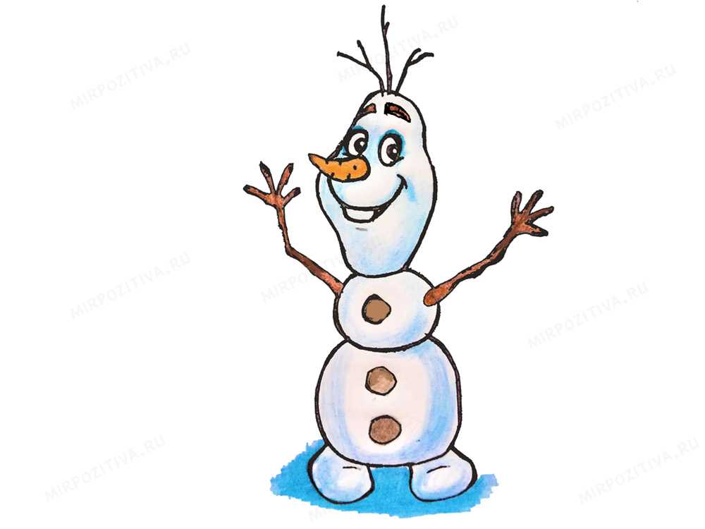 Завершим детский рисунок, раскрасив фигурку Олафа.
