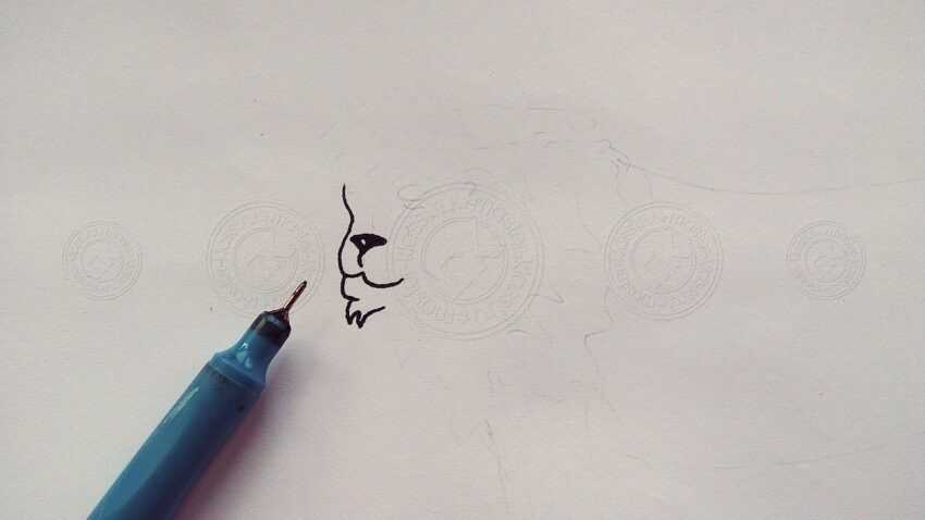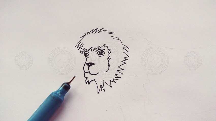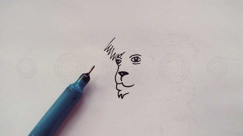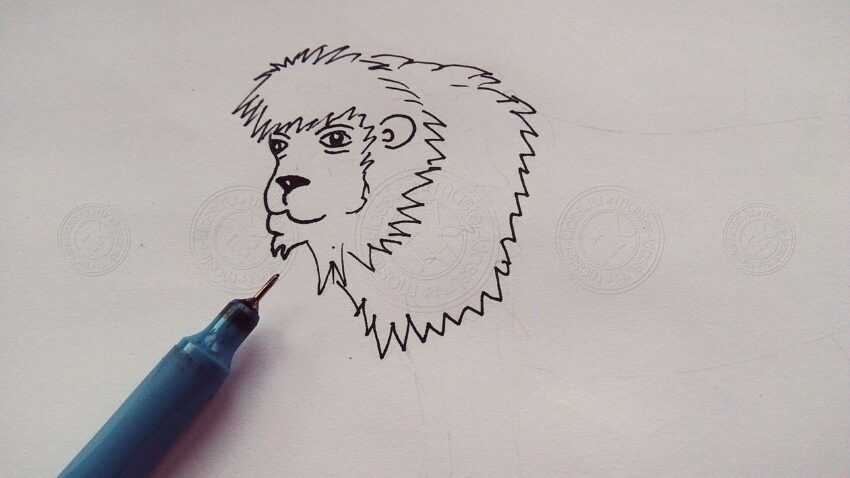 | 8 | Рисование челки | Она должна быть расположена на лбу льва. Выполняется парой дуговых линий. Они начинаются от той точки на лбу, где соединяются обе дуговые линии контуров, а заканчиваются в нескольких см над глазами. |