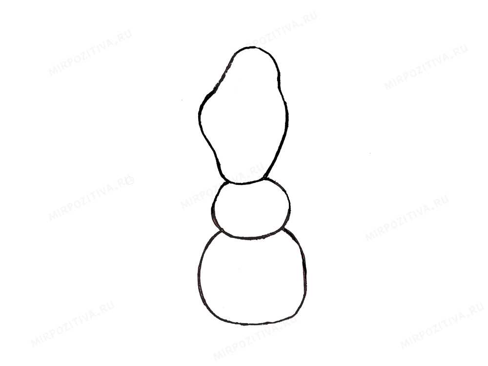 Олаф из «Холодного сердца» — самый популярный и веселый снеговик последнего десятилетия. У него интересное строение: нижняя и средняя часть круглые, а голова похожа на неровную грушу. Нарисуйте их.