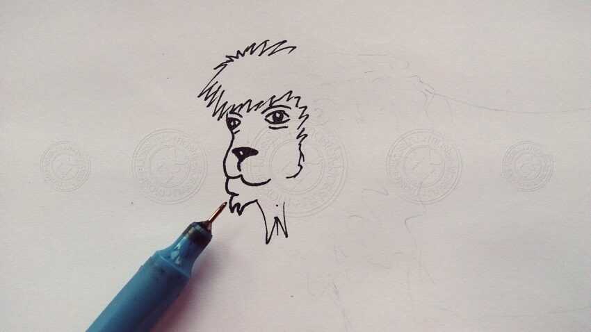 | 7 | Рисование ушей | Они должны «выглядывать» из-под гривы. Каждое из них можно представить парой дуговых линий. При этом под каждым ухом также нужно изобразить комки шерсти. |
