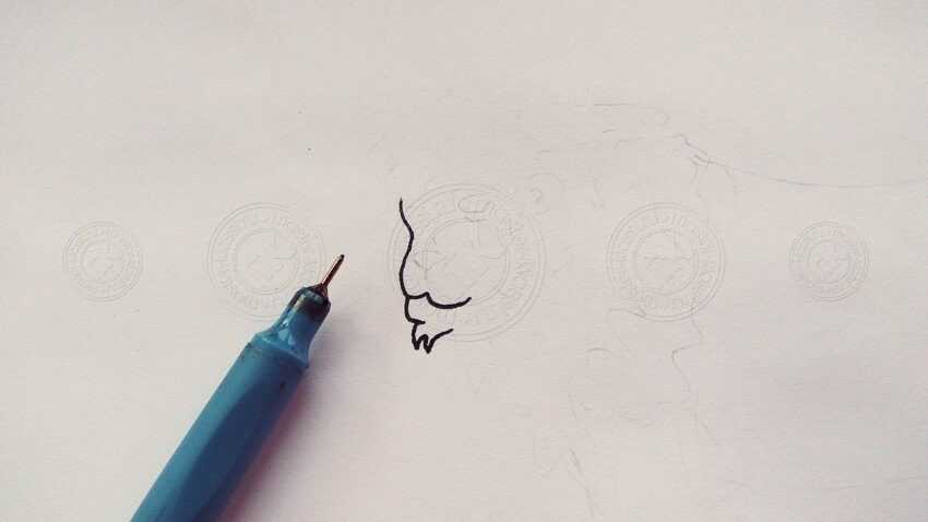 4. Теперь по центру выделите нос и отведите черточку вниз.