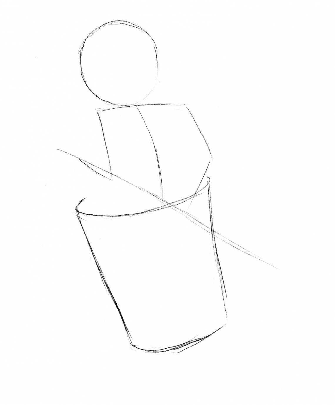 Ближнему рукаву уделите немного больше внимания. Для этого сотрите нарисованные в предыдущих этапах направляющие линии, вместо них нарисуйте рукава (примерно доходящие к локтю). Не забудьте наметить складки.