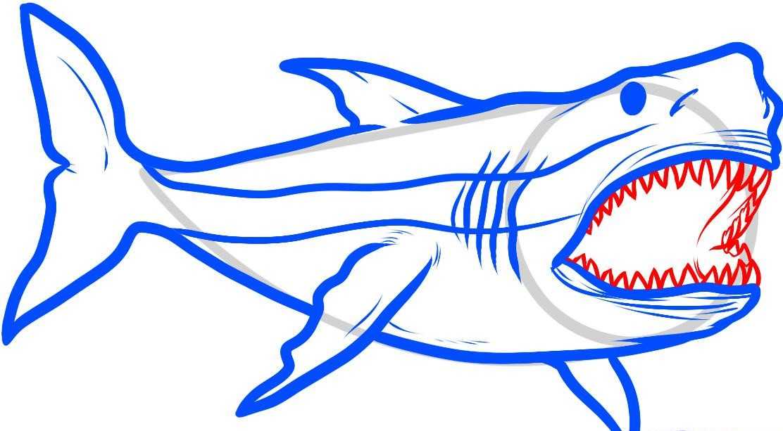 Мегалодон – вид вымерших акул. Это огромные 15-ти метровые морские чудовищ, обитавшие много тысяч лет назад во всем мировом океане. Предлагаем посмотреть, как можно нарисовать акулу мегалодон в том виде, который предполагается ученными на основании найденных окаменелых останков.