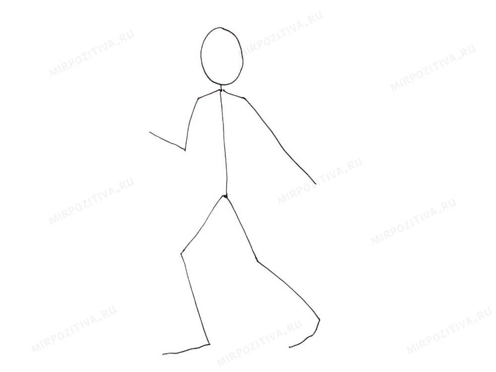 - Снизу маленького кружка нарисовать короткие ножки в виде двух параллельных прямых, которые должны сужаться к низу и заканчиваться копытцами в форме перевернутой буквы «М».