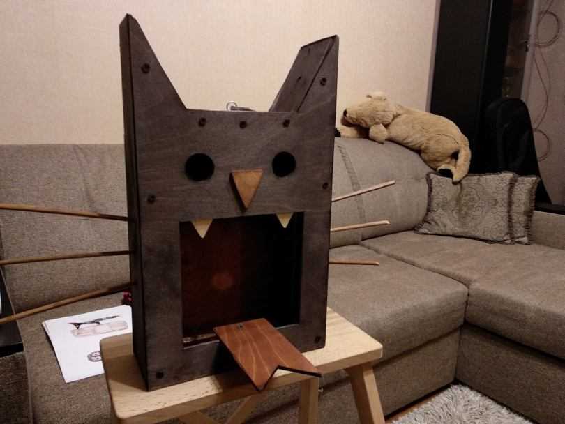 Даже жёрдочки можно легко сделать из палочек для суши или веточек, вставленных ближе к основанию коробкиМожно раскрасить домик или оставить стандартную расцветку коробки – в любом случае птицам будет по душе конструкция и угощение внутри