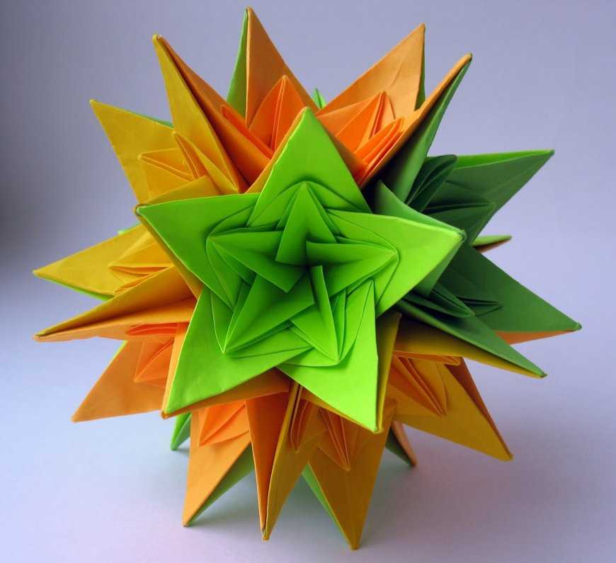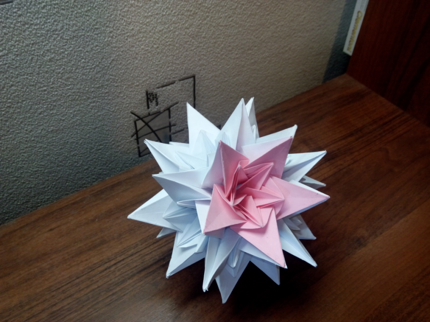 Кусудама – японская техника изготовления объемных поделок из бумаги. Здесь модули скрепляются клеем или нитками.