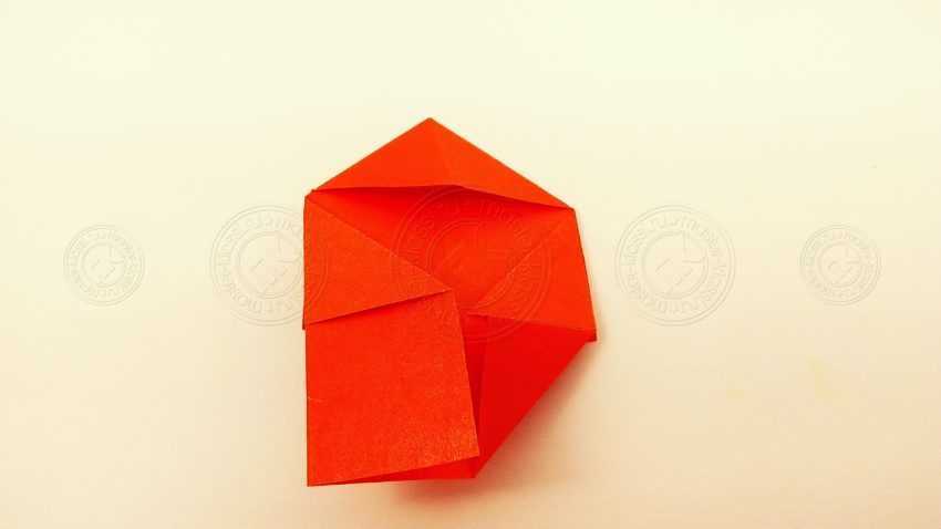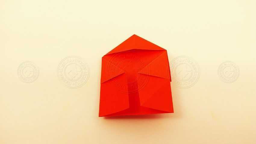6. Противоположный уголок согните таким же способом. То есть выделите своеобразный домик – деталь, верх которой смотрится, как крыша дома.