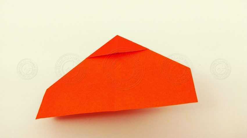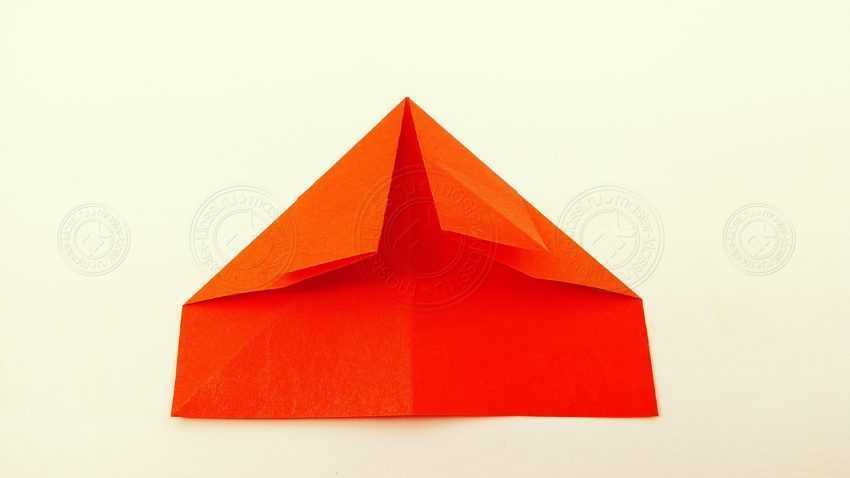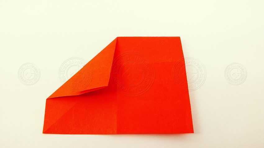 5. Верхний сложенный уголок отогните вверх под углом 45 градусов и совместите его с центральной серединной линией.