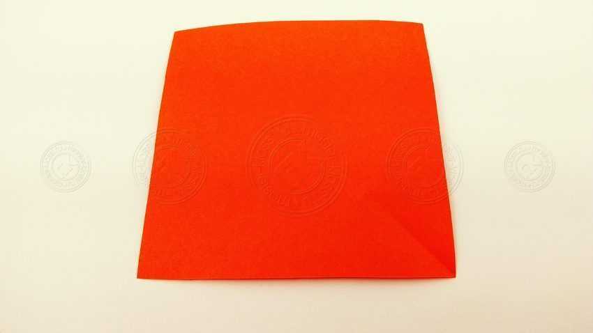 1. Если у вас есть бумага нужного цвета, то считайте, что половина дела уже выполнена. Подготовьте квадрат алой бумаги, размер его любой – 15 см сторона или около того. Также желательно взять двухстороннюю бумагу, тонкую, чтобы легче было вырезать и складывать ее.