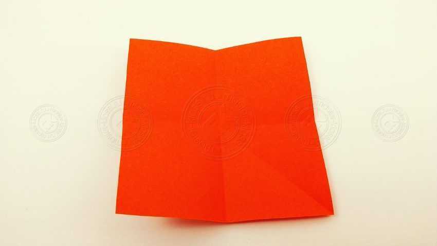 2. В подготовленном квадрате выделите крестообразные линии. То есть согните дважды через середины сторон. Квадрат вымеряйте очень четко, чтобы все линии, углы и стороны у вас сходились, были параллельными и перпендикулярными. Только в этом случае вы без труда получите планируемую поделку.