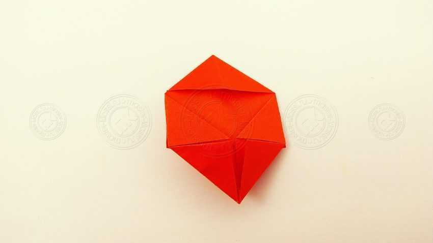 9. В нижней части полученной заготовки вы увидите 2 квадрата. Согните их по диагоналям, то есть под углом 45 градусов.
