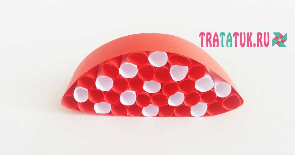 Склейте стороны, и получится контур шляпки мухомора, которую будем наполнять трубочками.