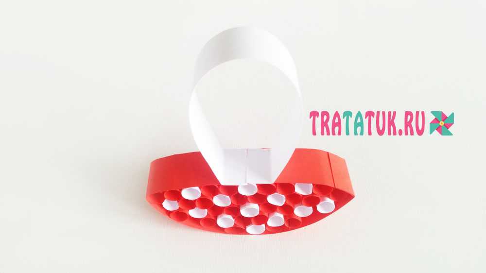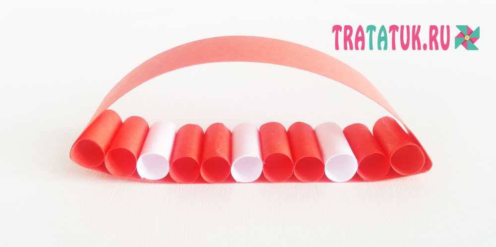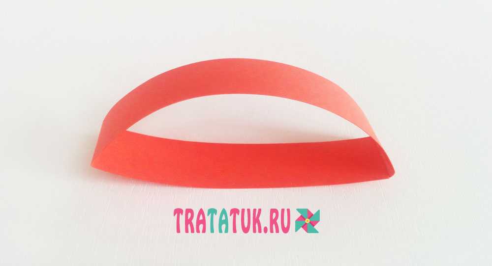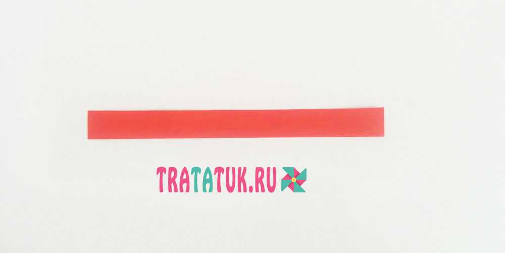Для шляпки понадобится полоса из красного картона длиной 22 см и шириной – 2 см. Вообще, ширина всех деталей будет равняться 2 см, как шляпки так и трубочек, а также ножки и травки.