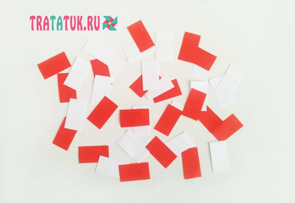 Нарежьте полосы на прямоугольники, шириной 2 см.