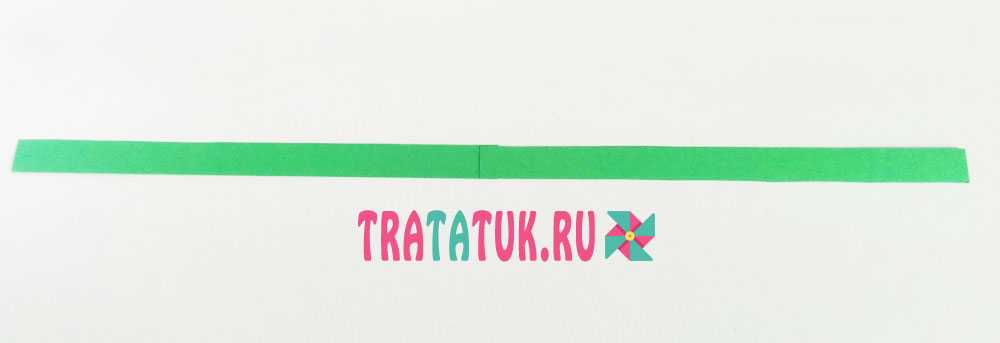 Отрежьте две полосы с широкой части зеленого картона А4, шириной 2 см.