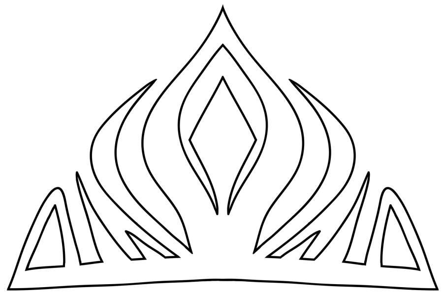Нарисовать и вырезать диадему шириной примерно 10 см, высота посередине – около 8 см. Заготовку приклеить к полосе по центру.