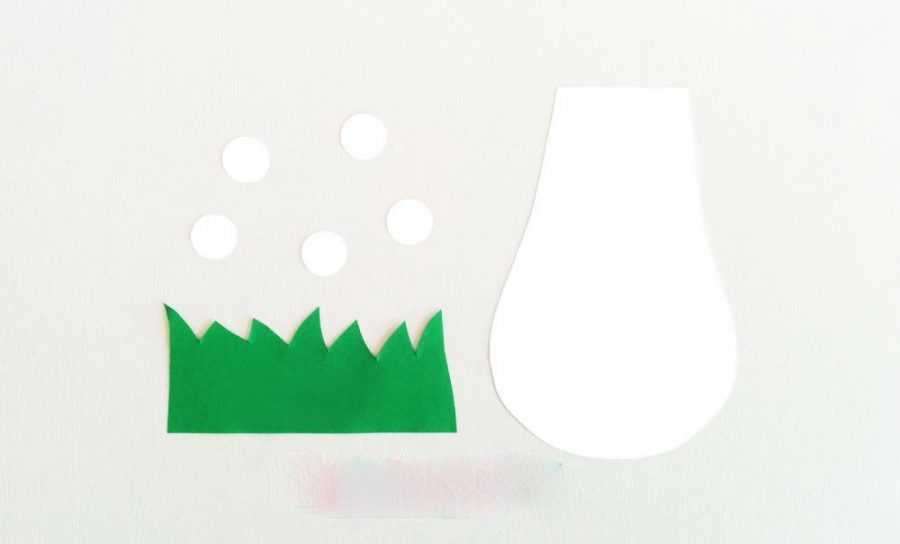 Далее нужно нарисовать и вырезать ножку из белого или светлого картона. Если поделка будет частью аппликации, то ножку можно вырезать из простой бумаги, а если будущая поделка станет самостоятельным изделием, то желательно сделать ножку из картона.