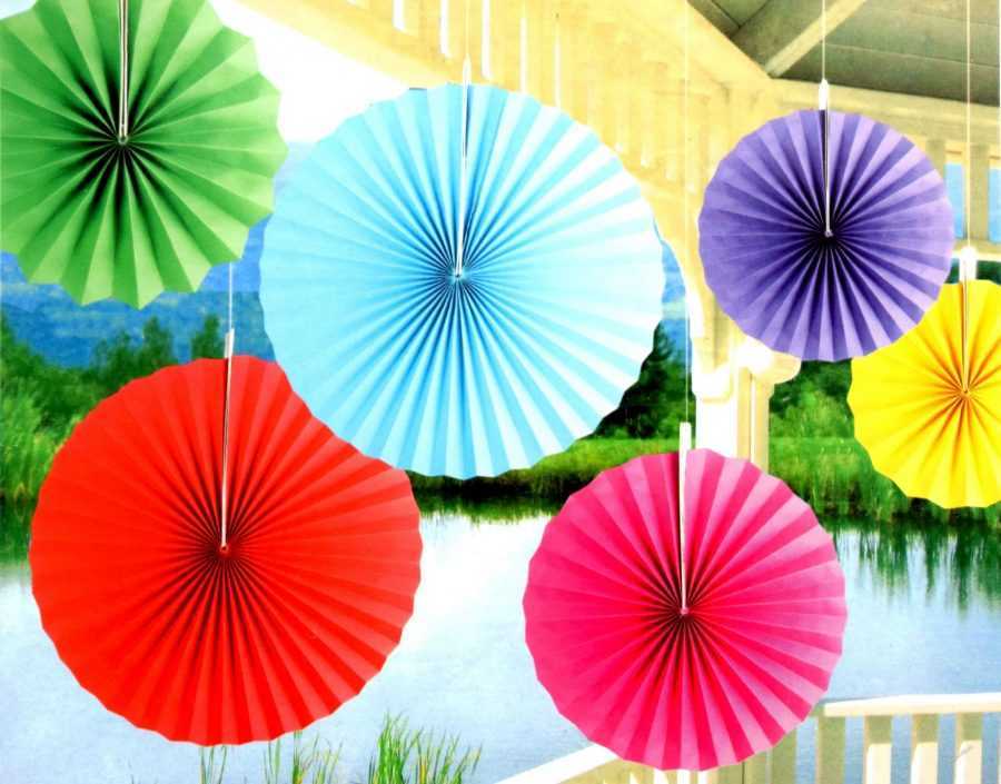 Затем обе гармошки нужно сложить вдвое и проклеить. В итоге изделие должно напоминать веер. Обе половинки «веера» необходимо склеить, чтобы получился круг.