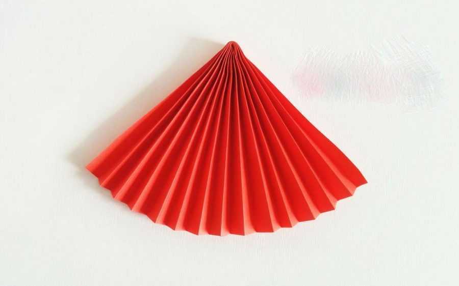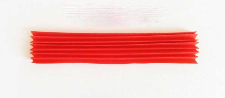 Чтобы сделать эту поделку из бумаги гармошкой, не понадобится даже шаблон. Как и в предыдущих работах нужно вырезать прямоугольник из красной бумаги.