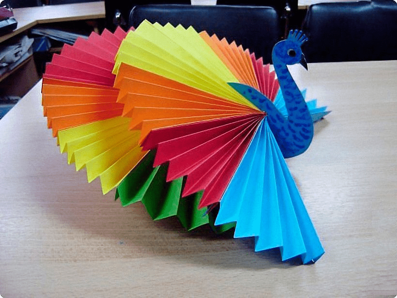 Угол туловища обрезать. Оставшийся от квадрата фрагмент разрезать на узкую и широкую части. Их надо собрать в гармошку. Первая будет хвостом, а вторая – крылом. По краям можно вырезать узор (например, как у новогодних снежинок).