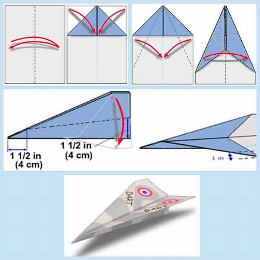 Существует еще один не менее интересный способ создания быстрого самолета из бумаги, но 100 метров он вряд ли пролетит. Данную поделку получится смастерить довольно легко: