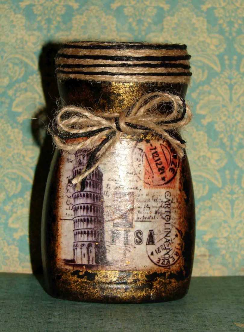 Ваза из банки в технике декупаж