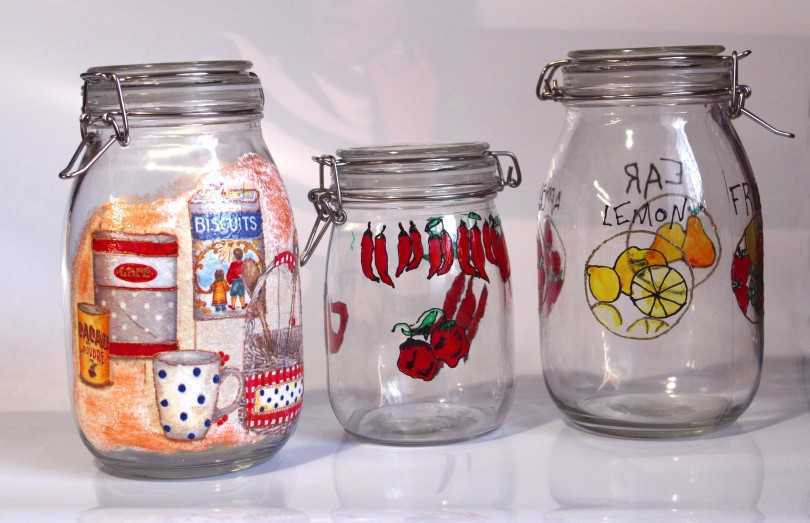 Как украсить банку стеклянную, чтобы получилось произведение искусства? На вооружении у мастеров множество вариаций. Самая доступная для новичков – применение малярного скотча и баллончика с краской. Колорит на ваше усмотрение. Толщина липкой ленты варьируется исходя из концепции дизайна.