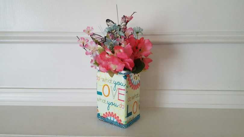 Если использовать канцелярский но, то даже из самого банального куска пластика можно сделать красиво декорированную вазу.