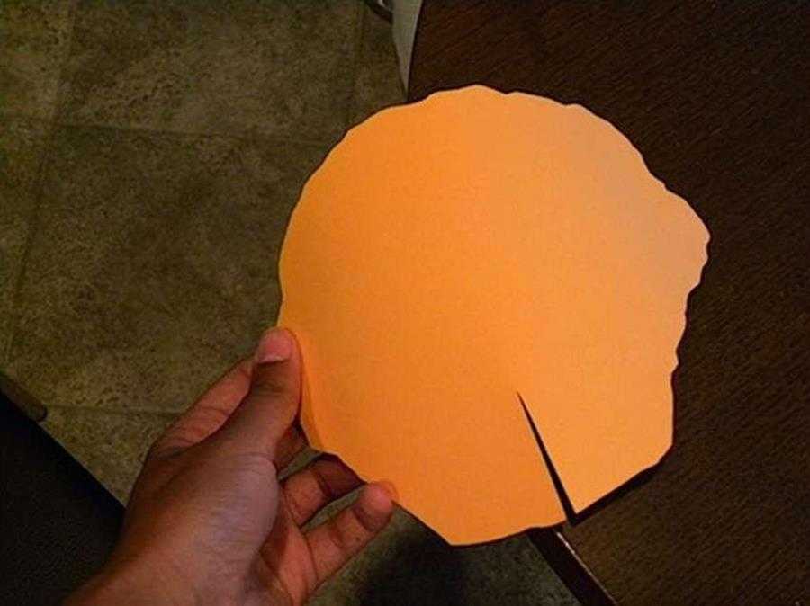 Из жёлтой бумаги вырезаете большой круг и нарезаете его края бахромой. Бахрому же загибаете немного вверх. Тогда сердцевина вашего цветка, а это именно она, будет объёмной.