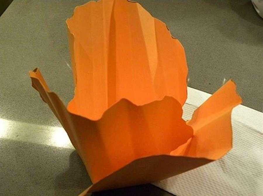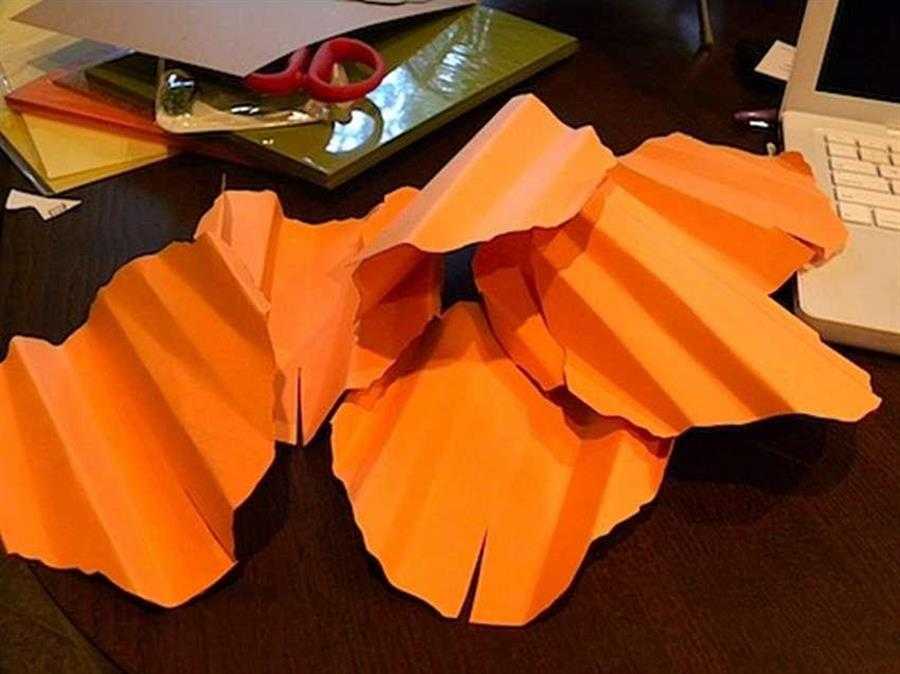 Вырезав достаточное количество лепестков, вы складываете каждый из них в гармошку, несильно прогладив линии сгиба, и снова расправляете.