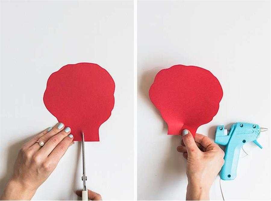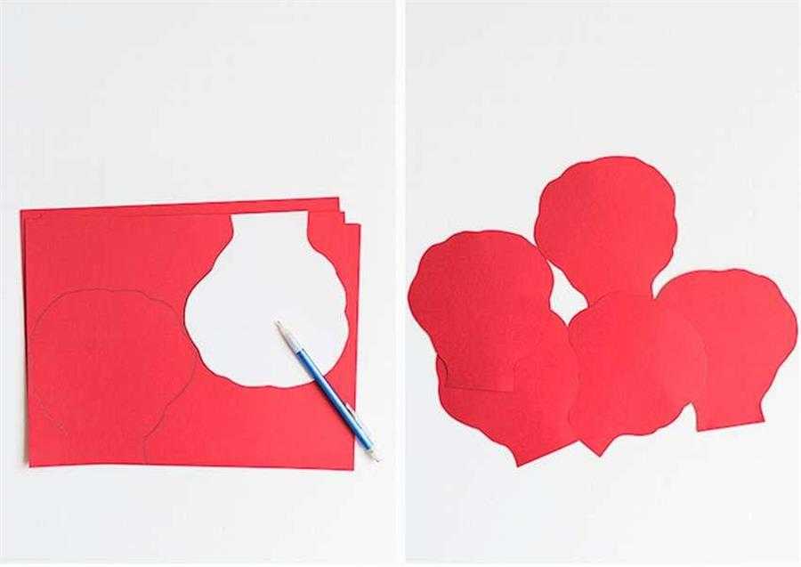 Сначала из красной бумаги вырезаются лепестки. Для одного цветка достаточно пяти штук.