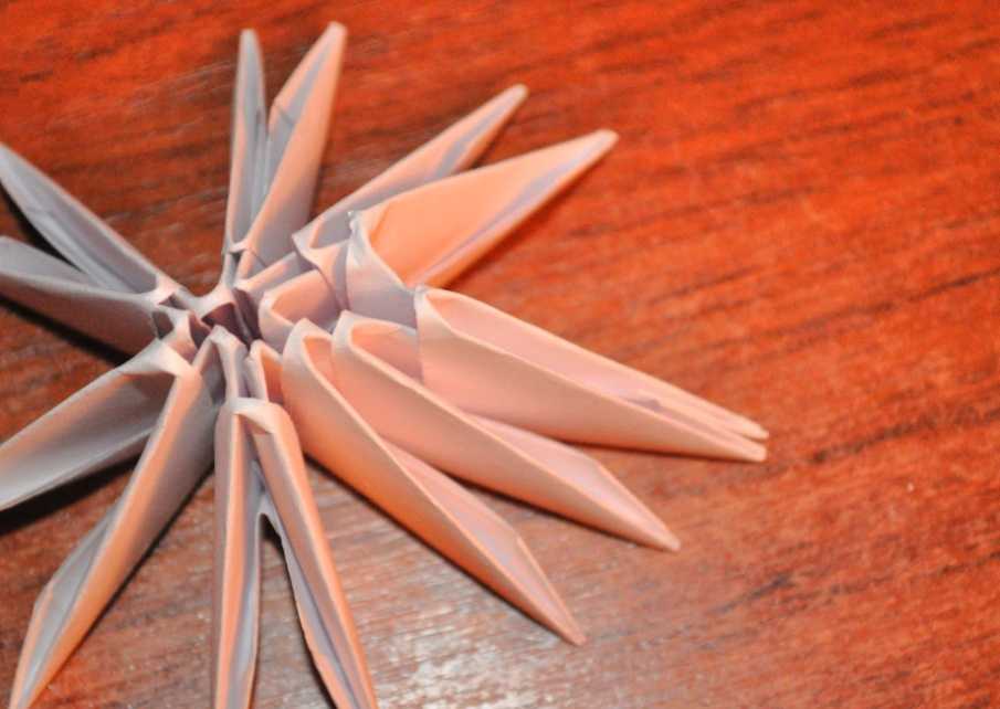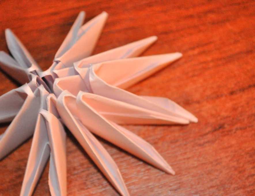 Китайское модульное оригами требует терпения и скрупулёзности. Некачественные детали или сборка, легко испортят результат многочасового труда. Модули сегодня можно купить в готовом виде, чтобы сразу перейти к творческому процессу. Начало всегда одинаковое – параллельно собираются два ряда. Последний модульный элемент замыкает цепочку, которая образует круг. Выглядит это следующим образом: