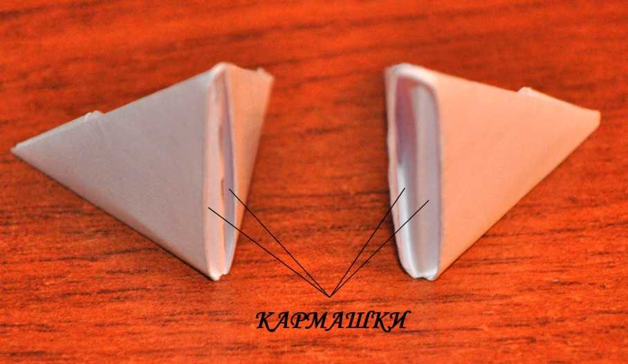 Кармашек — это тот же уголок, только с обратной стороны. С другой стороны уголка получились кармашки, в которые будут вставляться уголки. Любая фигура в технике кусудама складывается из треугольных модулей, которые вставляются друг в друга.