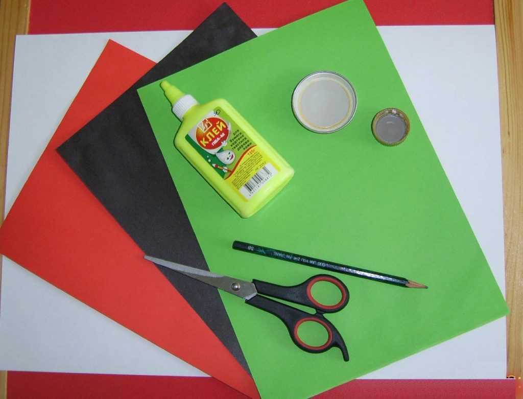 14. Для нее необходимо ножницами вырезать лист из зеленой бумаги.