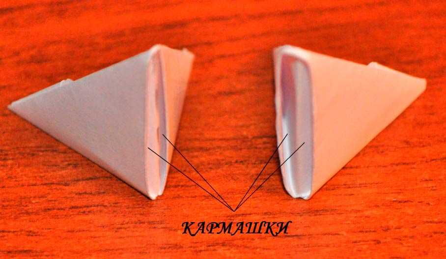 Схема и поэтапное складывание треугольников модуля