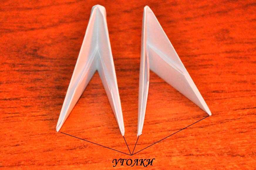 Модульное оригами подразумевает сборку фигурки из множества одинаковых треугольных заготовок.