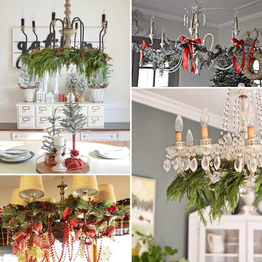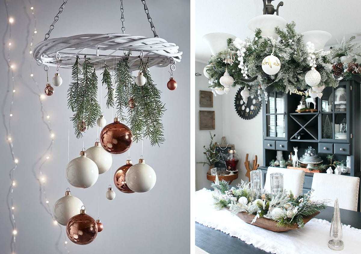Люстра украшенная хвойными лапками выглядит очень стильно и необычно