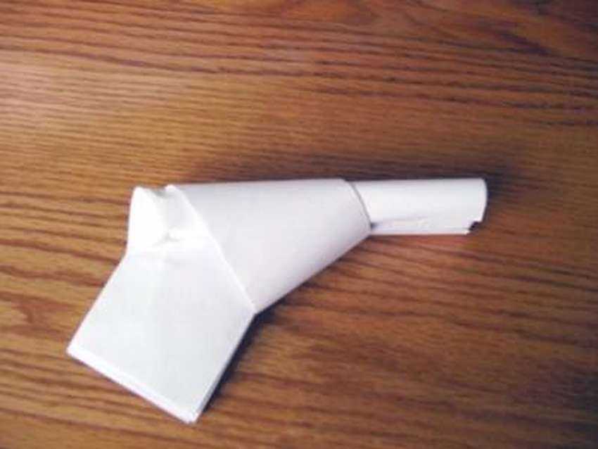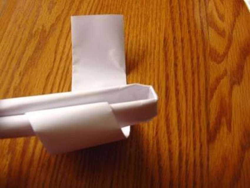 — Если модель при запуске резко взлетает вверх (входит в так называемую «мёртвую петлю») и затем быстро идёт носом вниз, то следует уплотнить носовую часть, увеличив её вес. Для этого нос подгибается вовнутрь и фиксируется клеем либо обычной канцелярской скрепкой, как это показано на «Как сделать из бумаги самолет, который летает» фото (ситуация 1).