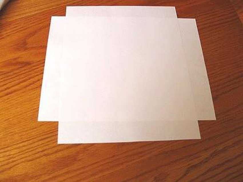 - Прямоугольный лист сложить пополам и развернуть. Затем к линии сгиба с обеих сторон сложить два раза и полученную заготовку сложить пополам.